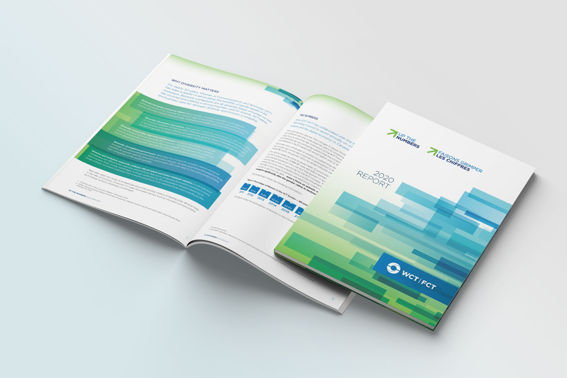 We’ve designed multiple reports for WCT, including “Up the Numbers”, with an emphasis on strong layout, clear hierarchy, and accessible, engaging design. Our approach ensures smooth integration of French content and leaves room for future updates — replacing stats, refreshing visuals, or adapting to new themes — year over year, without compromising the design’s integrity.